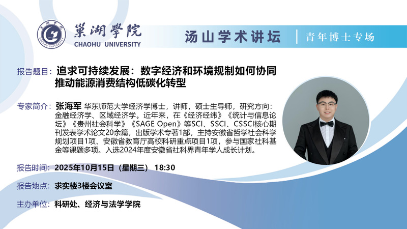 • 10月15日:巢湖學(xué)院經(jīng)濟與法學(xué)學(xué)院講師張海軍講座
